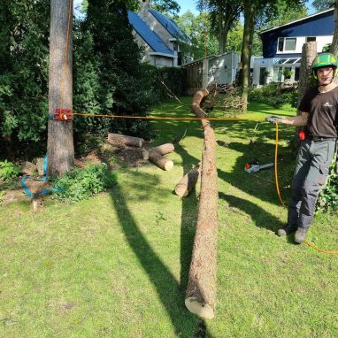 Wij zijn gespecialiseerd om op moeilijk bereikbare plekken te komen en kunnen tevens gebruik maken van een afvangsysteem om zwaar hout boven huizen, garages, serres, beschutting en bestrating gemakkelijk en veilig te verwijderen.