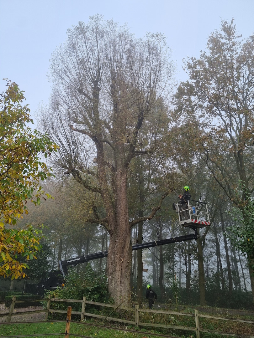 Wij zijn gespecialiseerd om op moeilijk bereikbare plekken te komen en kunnen tevens gebruik maken van een afvangsysteem om zwaar hout boven huizen, garages, serres, beschutting en bestrating gemakkelijk en veilig te verwijderen.